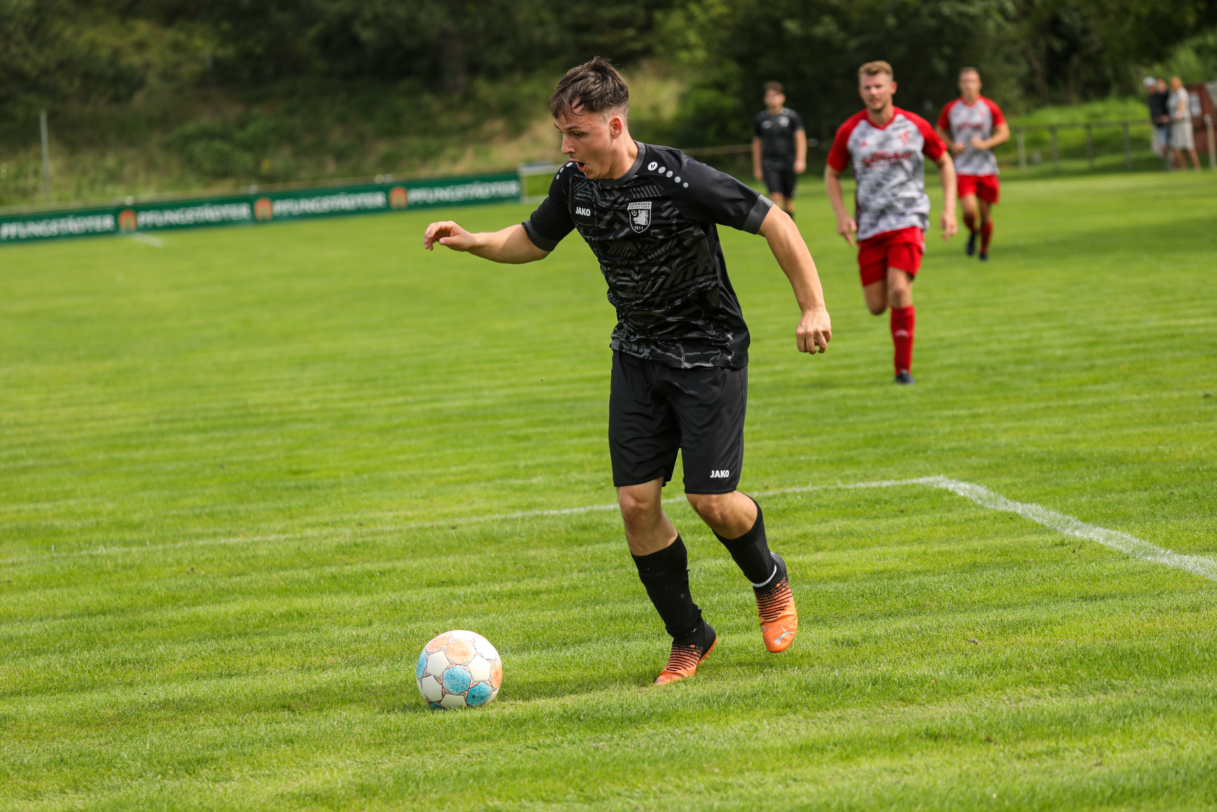 Die Rollen waren klar verteilt. Nach dem 17:0 in der letzten Saison wollte die Germania auch in der neuen Saison wieder 3 Punkte von der FTG Pfungstadt II entführen. Dass dies nicht so einfach werden würde wie zuvor, war nach Blick auf die Aufstellung des Heimteams klar, dass in einer völlig neuen Formation antrat. Dennoch war man guten Mutes auf Eberstädter Seite, standen doch endlich mal wieder zwei echte Knipser vorne im Sturm. Mit dem zurückgekehrten Alexander Ehrstein und Benedikt Heid war das schon ein echtes Brett und auch die Spieler dahinter müssen sich da keineswegs verstecken.