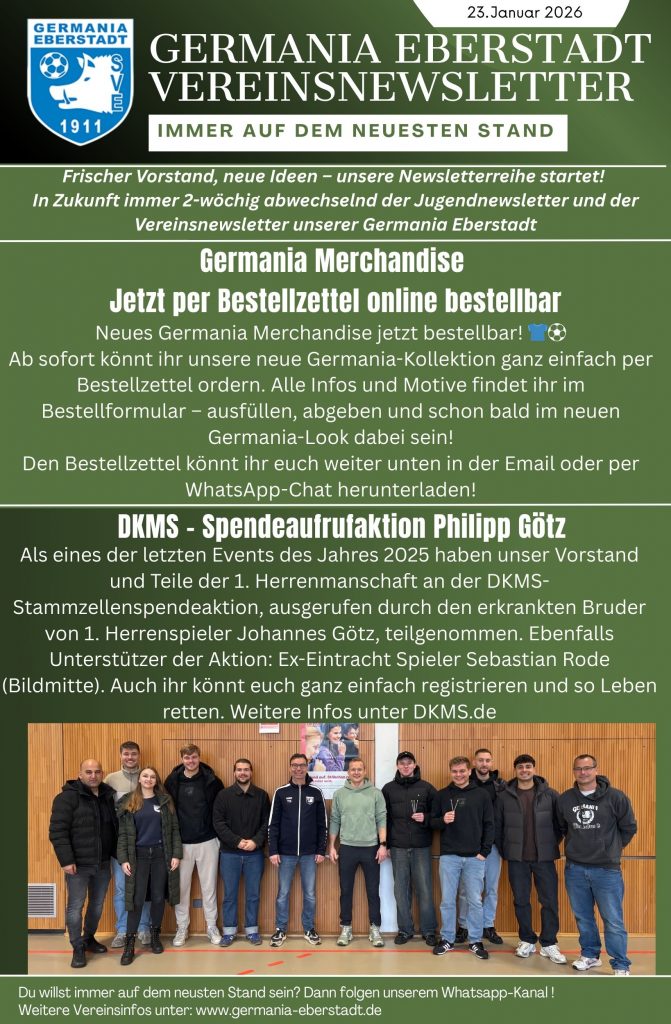 Ob spannende Spielberichte, Neuigkeiten rund um den Verein oder Einblicke hinter die Kulissen – mit unserem Newsletter bleibst du stets bestens informiert. Hier findest du alles, was das Vereinsleben lebendig macht – regelmäßig, direkt und aus erster Hand.